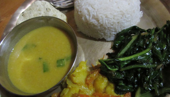 4時間くらい歩いたところにパクディンという村で、本日は終了。初日ですからね。勾配はそんなに大したことなかったし、まだまだ歩けるくらい元気なのだが、体を慣らすという意味で、無理はせず。山小屋のようなところで、日が当たっている間は暖かかったのだが、日が暮れたら一気に寒くなってしまった。おお、やっぱり冷えるな。ダウンを着こまないと風邪ひきそうだ。夕飯はダルバート。お代わり自由なのが嬉しい。
