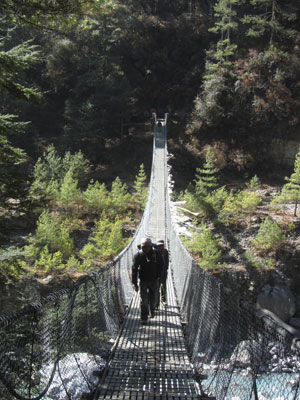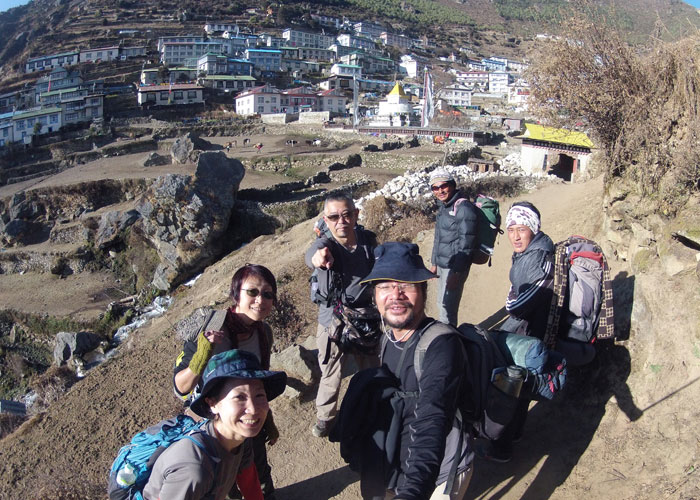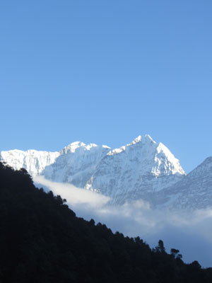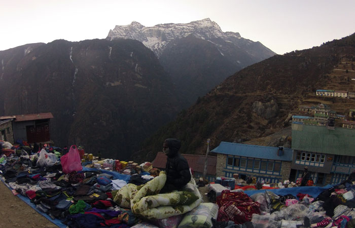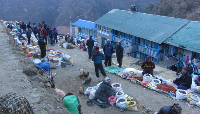 さて、まぁ、なんとか、今日のお目当ての地、ナムチェに到着。宿に荷物を置いて、ナムチェの町のマーケットをみんなで散策していたら・・・なんと、ここで、セネガル&マリ以来となる岡田くんと再会。ちょうどこの辺を旅していて、トレッキング中だって話は聞いていたのだが、バザールを散歩中に、まさかの再会とは。