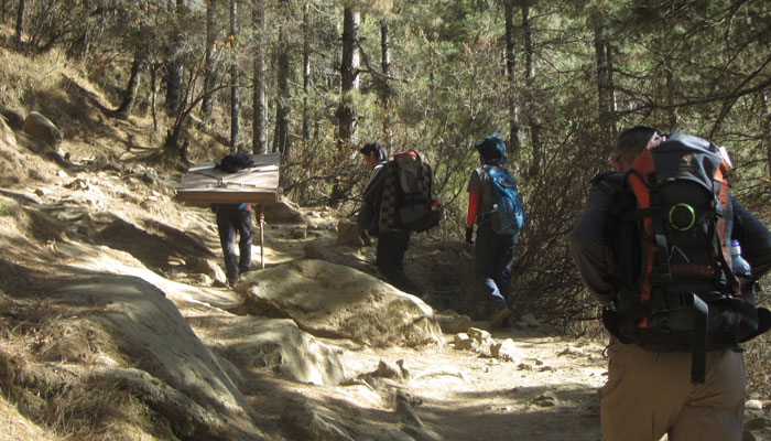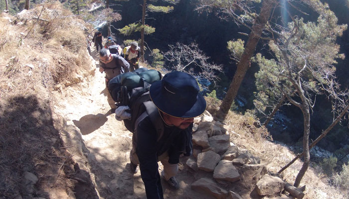 さてさて、ま、そんな心配はとりあえず、置いておいて、トレッキングを楽しむべし。日中は、ひたすら歩く。今日も天気が良く気持ちいい・・・が、今日の道は結構勾配があり、肉体的には結構大変だった。
