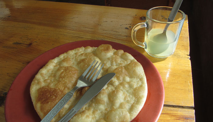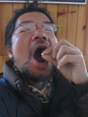 朝、皆さんから、味噌汁やらなんやら、おすそわけの品々をいただく。いやはや、ありがたい。高山病の薬ももらったので飲んでみる。自分では大丈夫だと思っていても、なるときにはいきなりなっちゃうからね。これからチャコさんたちに追いつくために、急ピッチで歩くワケだし、一応念のため。