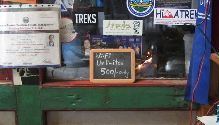 エベレストトレッキングの山小屋では、美味しい飯を作って出してくれる。なので、食事の心配は全くする必要はない。しかも、山小屋では有料ではあるが、Wifiも飛んでいたりする。いやぁ、こんなところにきてまでネットができるとは・・・ある意味便利なんだけど、そこまでしてやりたいかというと・・・まぁ、ちょっとやりたいかも。高いからやらないけど。