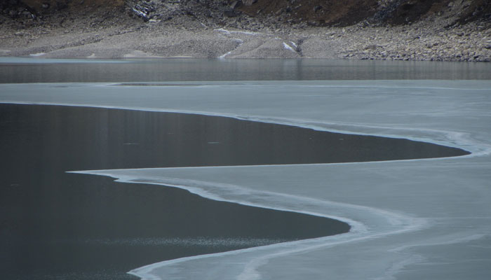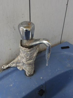 今朝も寒い。水道の水は完全に凍っている。水を使う作業は夕刻前までに終えておかねばならない。朝になると、水がこうやって使えなくなってしまうのが、この時期のエベレストの世界。