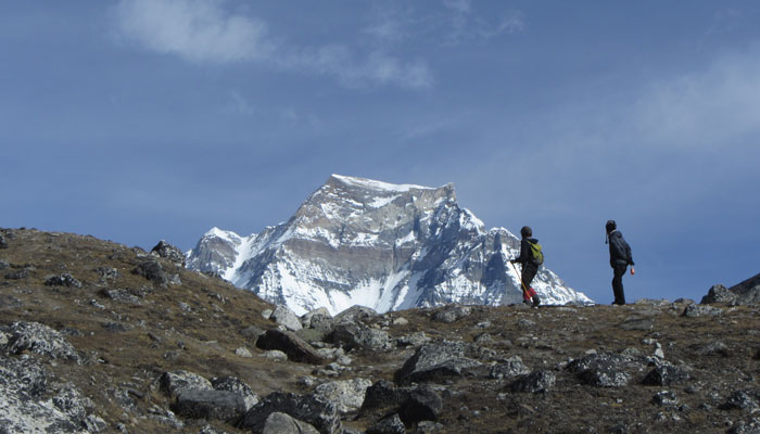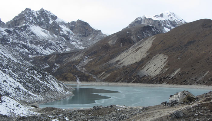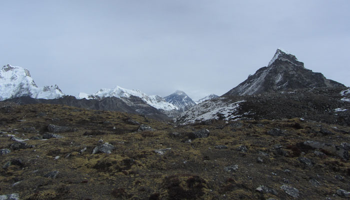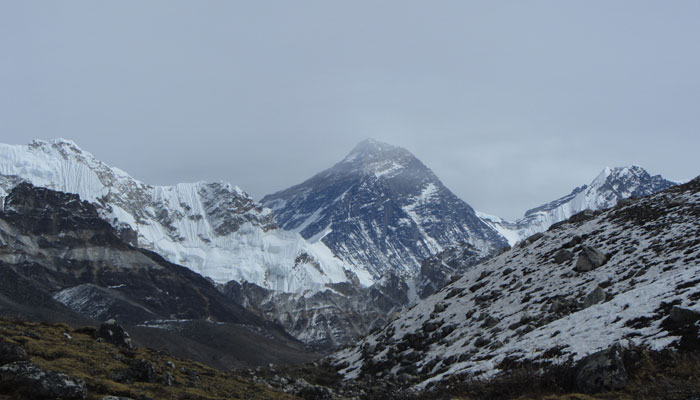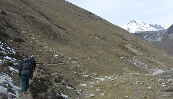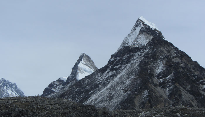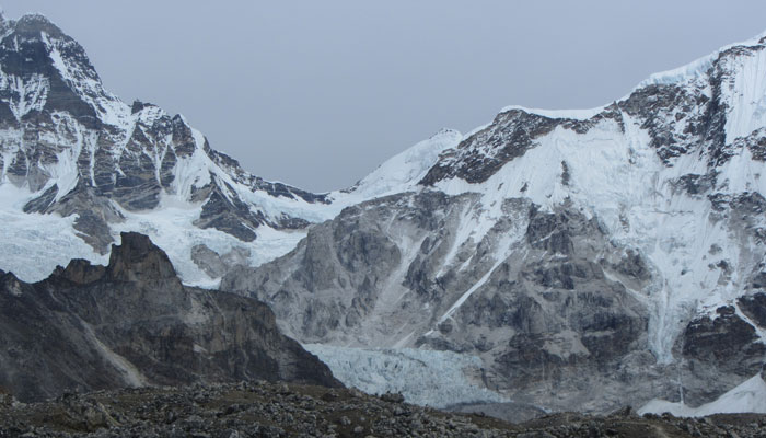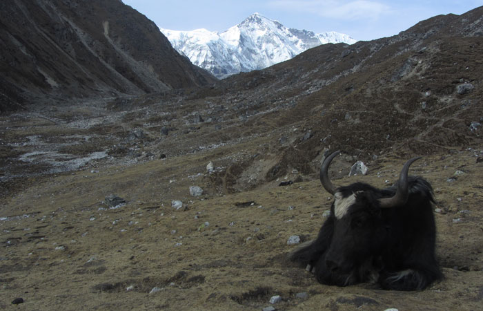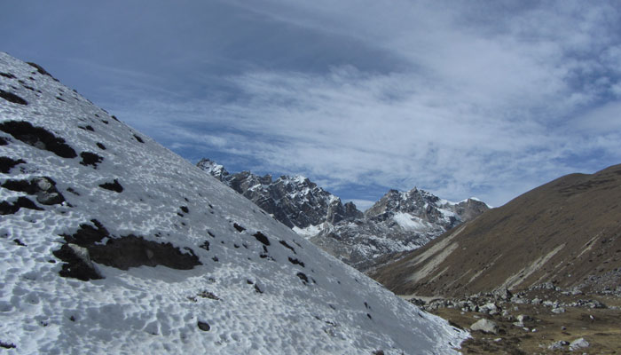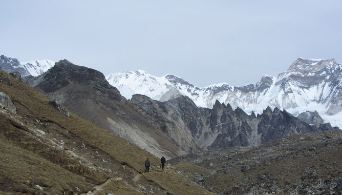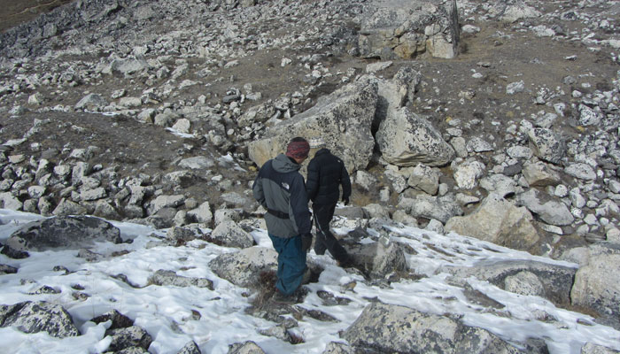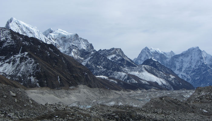さて、今日は、ゴーキョの宿に荷物を置いて、ゴーキョのさらに奥にあるチョー・オユー方面を探索することになったのだが・・・昨日のゴーキョピークを登頂した時点が、気持ち的にもまさにピークだったので、今日はなんだか気持ちが乗らない。しかも、これまでは雲一つない快晴の青空ばかりだったのに、今日は空に微妙な雲がかかってしまっている。