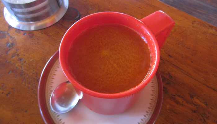それでも、途中ランチタイムではペリチェの村のレストランで長めの休憩をとってみた。チャコさんにおススメされていたシーブクトンという柑橘系の実のジュースがあったので、飲んでみたりして。これ、かなり美味かった。