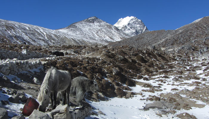 さて、峠を越えてからは、比較的なだらかな上り坂になり、なんとか日が暮れる前にロブチェまで到着することができた。今日歩いてきたこの道、高度順応できてない人なら3日くらいかけて歩いてくる行程だ。いやはや、それを1日で登ってくるなんて、体力バカ。ええ、まぁ、体力と、猪突猛進に突き進むことだけには自信があるんです。