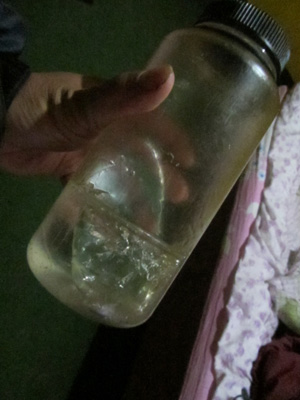 朝起きて、水を飲もうとしたら、完全に凍っていた。ああ、寒い。