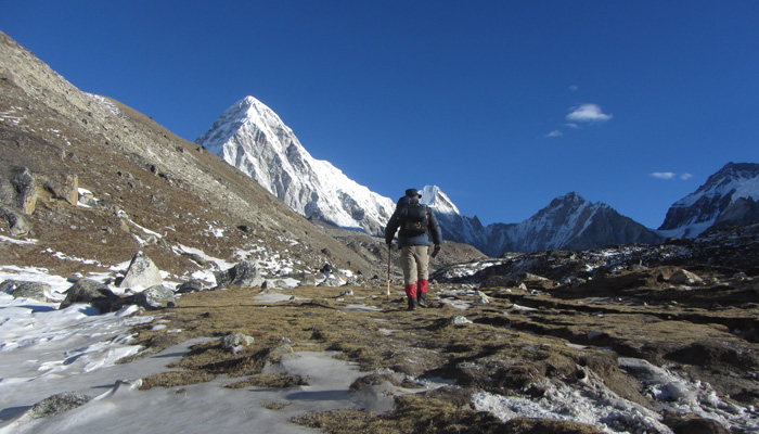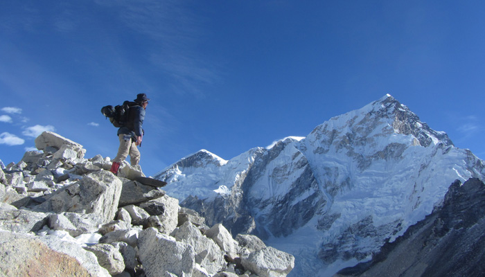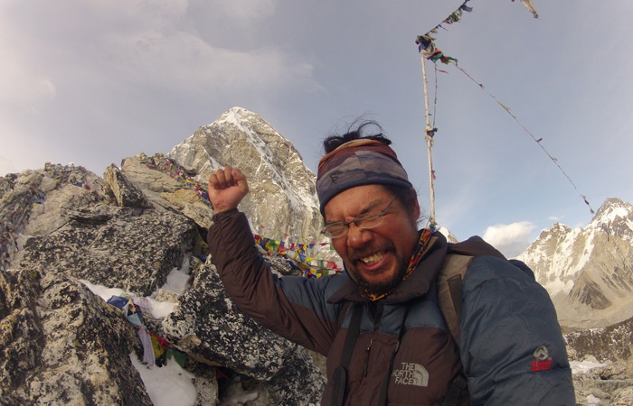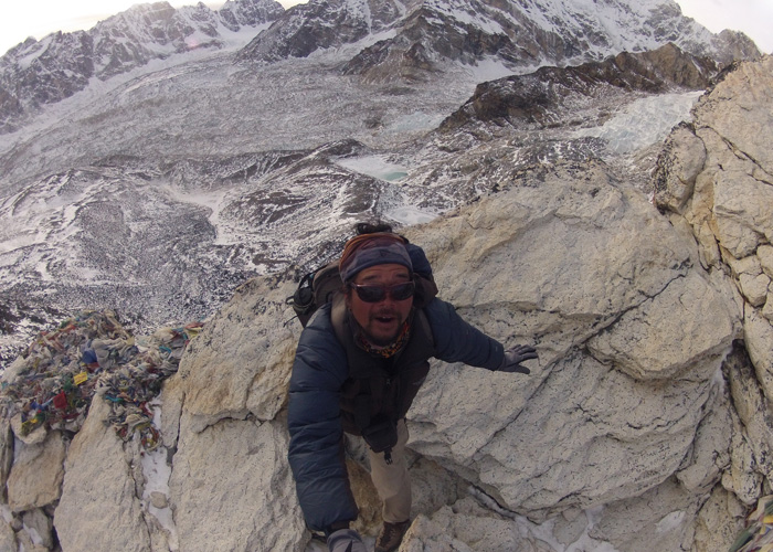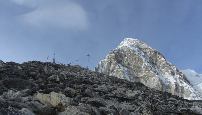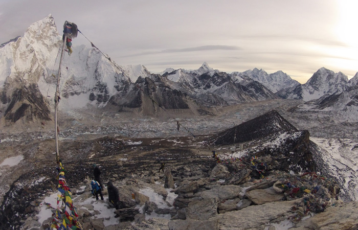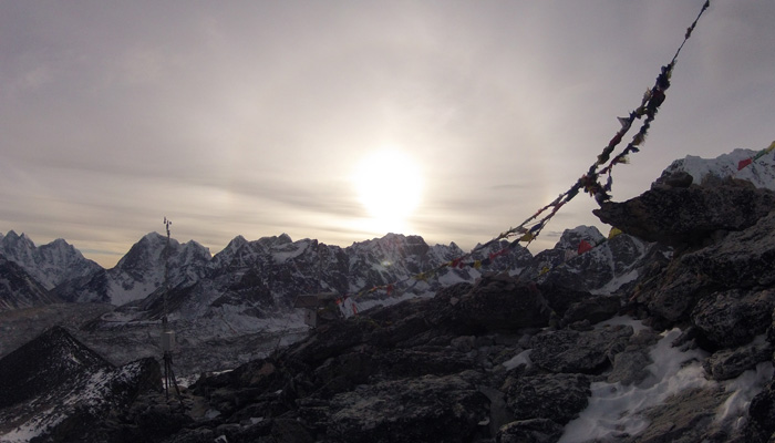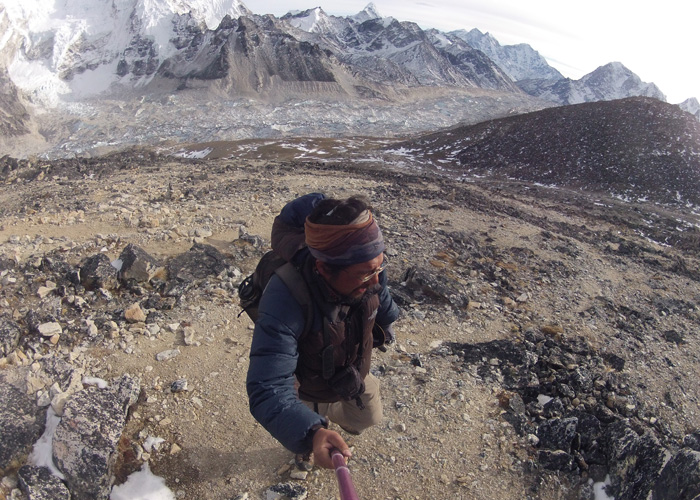 しかし、このカラパタールの登頂は、思っていた以上にしんどかった。ゴーキョピークくらいだろうと思っていたのだが、とんでもない。ゴーキョピークよりも数倍大変だった。途中、道が分からなくなって迷ってしまったってのもあり、めっちゃ疲れ果てて、なんとかカラパタールの展望台に到着。