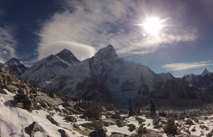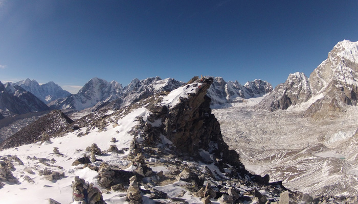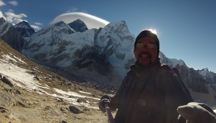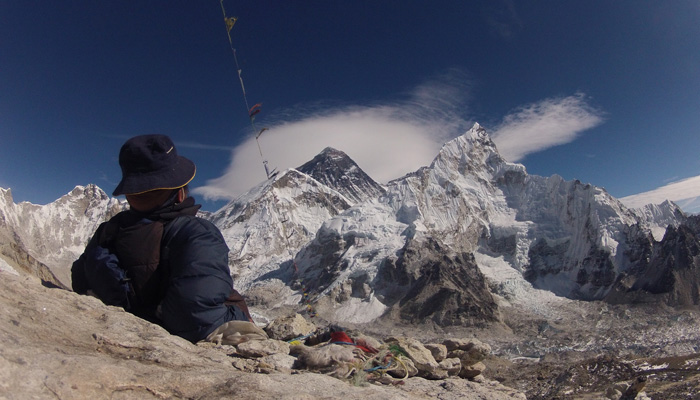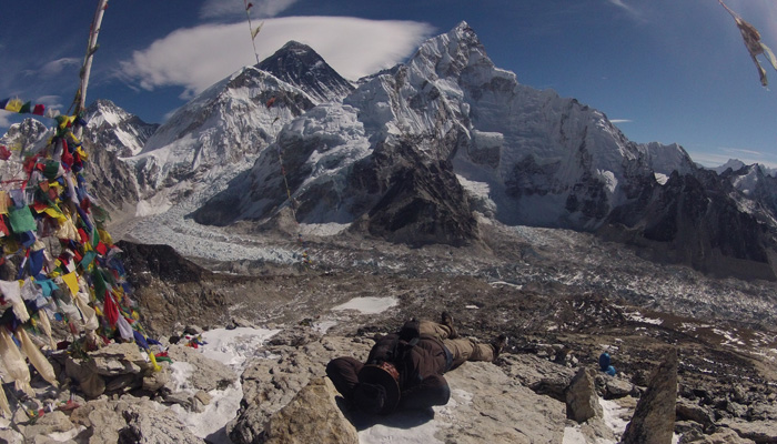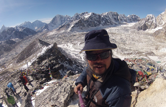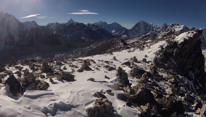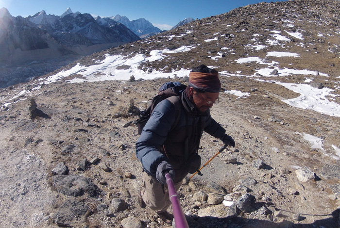 実はカラパタールの頂は5550m。エベレストベースキャンプより高い位置にある。そんあカラパタールまで登るのはホントシンドイのだが、二度目の今回は、登った後の気持ちよさを知っているため、辛さより期待が上回り、気合が入る。さらに、一度登ったため、道に迷うことなく、素直に登れたから、昨日よりは全然大変じゃなかった。まぁ、それでも、途中でくじけそうになるほど、大変ではあるのだが。