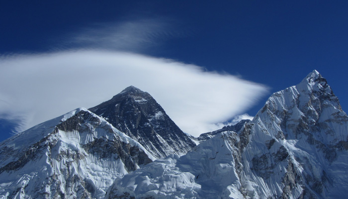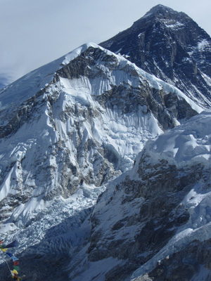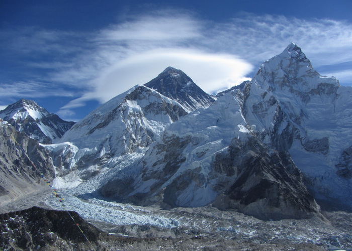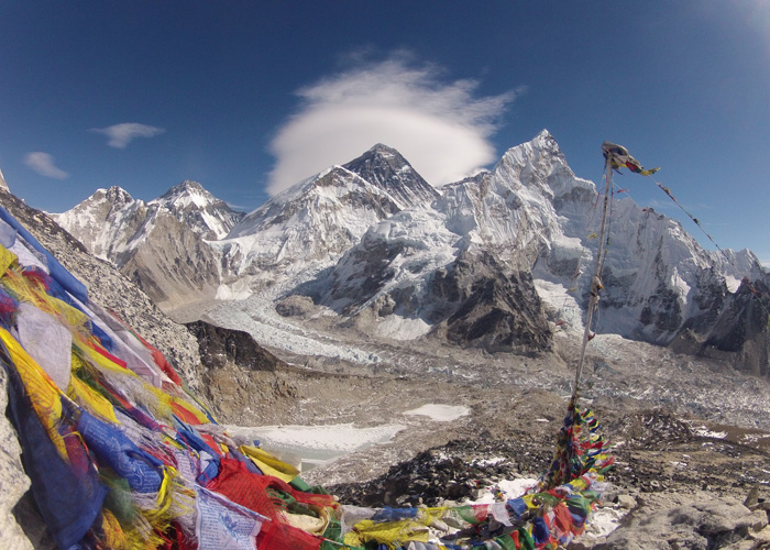 いやぁ、それにしても、ここは何度登ってもいい。今日も、エベレストには雲がかかっていたのだが、昨日のかかりかたとはちょっと違って、山頂はちゃんと見える感じ。そして、今日も、最初は展望台に何人か居たのだが、次第にみんな降りていってしまい、最終的にはオイラ一人になった。ということで、今日もこの素敵な風景を独り占め。