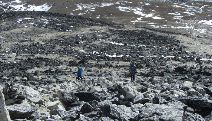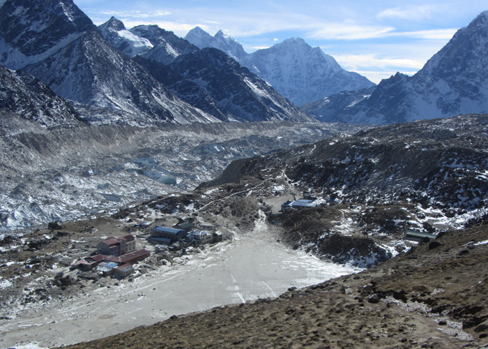 エベレストベースキャンプに行って、カラパタールに登って・・・と、ゴラクシェフに来てやるべきことはやってしまった。であれば、後は下ればいいのだが・・・しかし、せっかくここまで来たのに、一泊だけで戻ってしまうのは、なんだかとってももったいない。だってココは世界の屋根。一生のうちに二度とこないかもしれないところなのだから・・・ということで、もう一泊して、満喫することに。