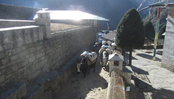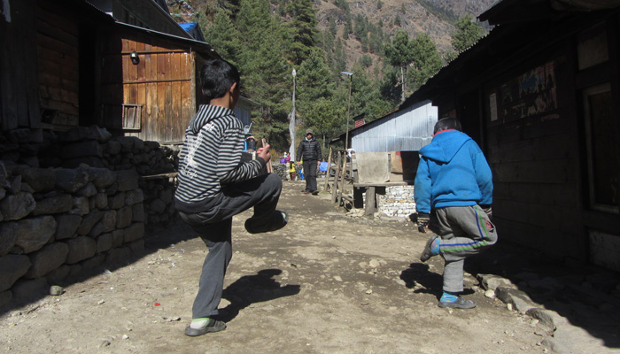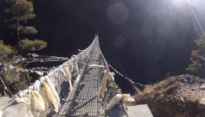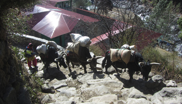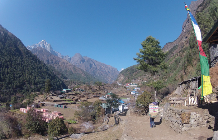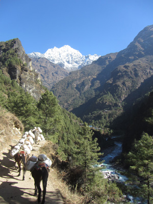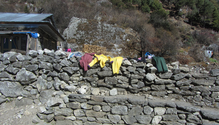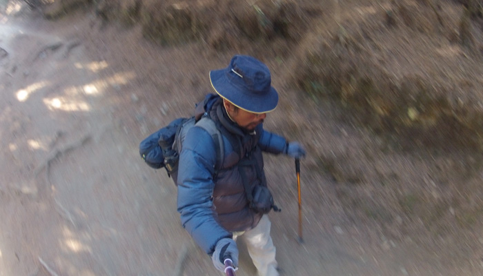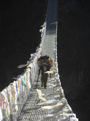 今日は飛行場のあるルクラまでこれまた一気に下ることに。ここから先は、あちこちに村らしきものが見え、人の住む世界へ戻ってきたことを実感できる。トレッキングももう終わりだな、なんて思い、ちと寂しい。