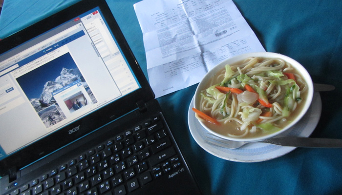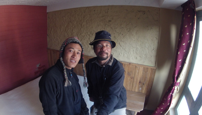 さて、ルクラに到着したら・・・なんと、ルクラの町の道で、ガイドのサガール君にバッタリと出会った。嬉しい再会だ。サガール君は、親切にも、宿に案内してくれて、さらに、オイラが明後日飛ぶ予定だった飛行機を明日にズラしてもらう手続きまでやってくれまして・・・もともと、サガール君は、チャコさんや石澤夫婦がお願いしていたガイドで会って、オイラ自身のガイドでもなんでもないのに、ここまでやってもらうなんて・・・いやぁ、めっちゃ嬉しいんですけど、なんか、めっちゃ恐縮でもある。素直に頼っちゃっていいものか、複雑な心境だ。