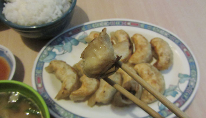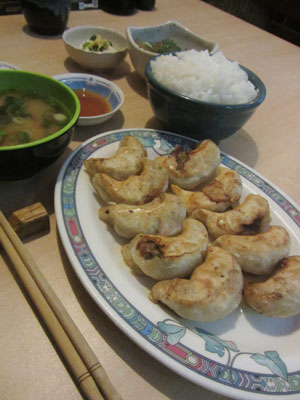 まずは、宿近くにある日本食屋<桃太郎>へ行き、餃子をオーダー。食べ終わってまだ食えそうだった続けてカレーを頼むつもりで、まず運ばれてきた餃子を食べてたら・・・