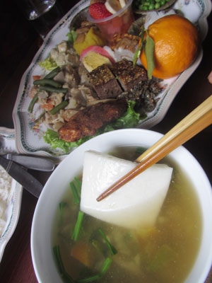 と、あっさり解決策が見つかり、おせちセットと野菜カレーを両方ともオーダー。で、運ばれてきたおせちセットとカレーを見て、隣に座ってたお姉さんが「カレーも!?」と突っ込んできた。そりゃそうだ、運ばれてきたおせちセットが思ってた以上にデカかったから、オイラ自身もカレーを頼んだことを若干後悔しているくらいなのだから。しかし、この直前に餃子定食を食べてきたことを知ったら、お姉さんはもっと驚くに違いない・・・