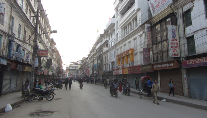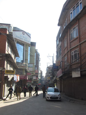 が、到着したカトマンドゥは、シャッターを下ろしているお店ばかりだった。どうやらカトマンドゥもスト状態のようだ。ただ、ポカラと違って、車やバイクはガンガン走っているので、ストっぽい雰囲気はあまりなかったのだが・・・