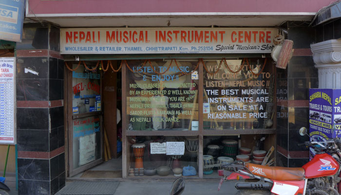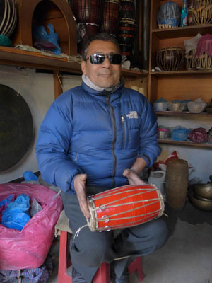 昨日、太鼓を叩く大道芸人を撮影したことで、音楽モードを刺激されたオイラ、部品が一部無くなってしまい、困っていたパンデイロを修理しに、カトマンドゥの楽器屋を訪れてみたんですわ。
