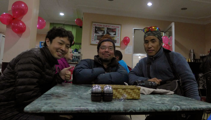 さて、夜、最後の晩餐ってことで、秋月さんと飯を食いに行こうと約束してたら、秋月さんの友達でモンゴル人チャリダーのモギーが遊びに来たというので、彼も一緒に飯を食べにいくことに。