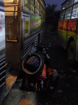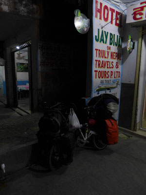 ということで、朝5時に起きて、出発。まずはネパールのイミグレで出国スタンプを押してもらう。その後、インドへ入ろうとしたら、ボーダーで荷物検査があった。真っ暗な中、メンドクサイことに、全部荷物の中身をチェックしようとする。しかも、モノを取り出すときはライトで照らす癖に、片づけることをせず、真っ暗な中オイラが片づけなければならない。ああ面倒だ。