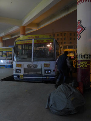 で、そのままバスターミナルまでしばらく走っていく。バスがいくつか並んでいるところがあったので、「バラナシ行きはどれですか?」と聞くと、一台のボロローカルバスが指さされた。うむむ、このボロバスっすか・・・