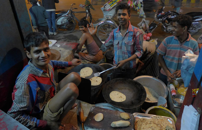 と思ったのは宿代くらいだった。早速夕飯を食べに外に出たところ、屋台風のカレー屋を発見。ここで、チャパティー+カレーを食べたのだが・・・めっちゃ美味いのに、めっちゃ安い。チャパティーが一枚5ルピー(10円)で、チャパティーの分だけ料金を払えばいい。お代わり自由なカレールーは、付け合わせ的な位置づけ。チャパティー4枚でそれなりに腹が膨れるから、20ルピー(40円)で、夕飯をすませることができるのだ。