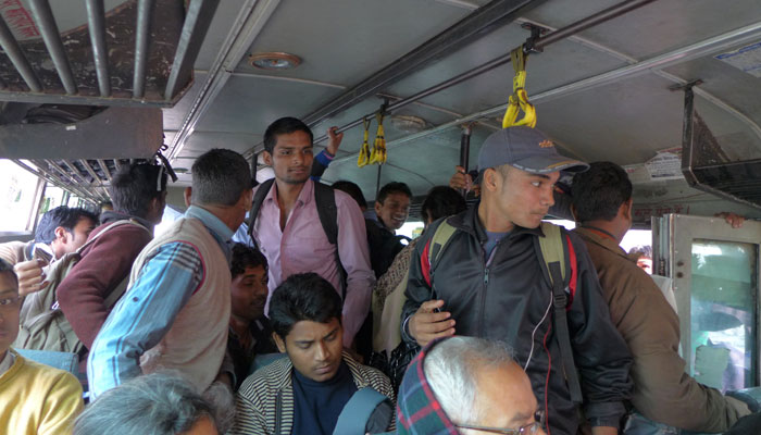 さて、そのまま走り続け、ゴラクシェフに到着。乗っていた人たちが大体降りて、ここからさらに楽になるなと思いきや、バスターミナルにはこれから乗り込む人だかりができていた。列なんて関係ない。並んでなんていやしない。早い者勝ち。とにかく、バスが停まった瞬間から、降りる人を待つことなく乗り込んでくるインド人。しかも、運転手が休憩に降りたら、運転席のドアからも強引に入ってくる。おいおい、そこから乗るか?そして、今まで余裕があったオイラの席も、つめらされて、ギュウギュウ詰めになってしまった。