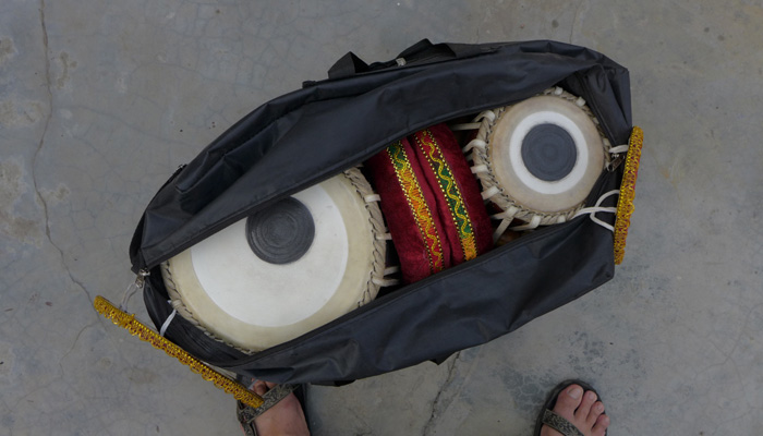ちなみにタブラとは、二つの玉状の太鼓を左右の手でそれぞれ叩く楽器。右手が高音のタブラ、左手が低音のバヤンと呼ぶ。