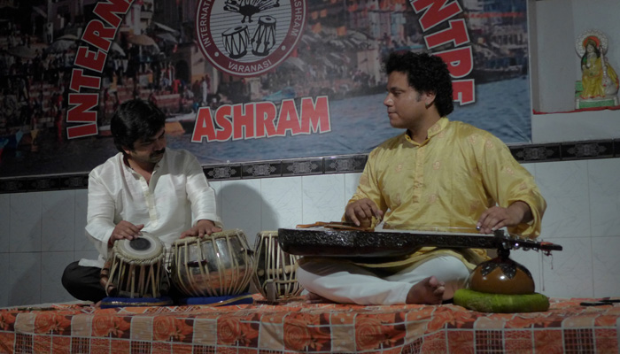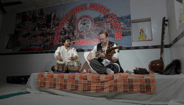 ロンプラに<バラナシで楽器を習うならココがおススメ>と書かれていたInternational Music Center [Ashram]という場所へ行ってみる。と、ちょうど、それっぽい男の人が玄関に居たので、タブラーに興味があるんですけど、と声をかけたら「教えてやる、中へ入れ」と強引に連れ込まれた。いや、今日は偵察のつもりなんですけど・・・と思ったのだが、タブラの前に座らされ、レッスンが始まってしまった。