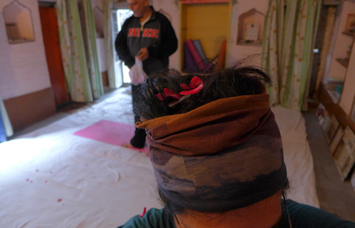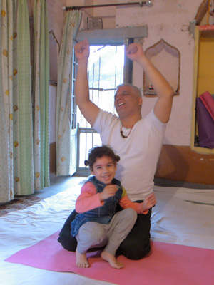 昨日行ったヨガレッスン、1日だけだと物足りなかったので(後半ずっとビデオを撮っているだけだったし)、もう一日ヨガをやってみることに。昨日教えてくれた先生はホーリーのために、地元の村に戻るとのことなので、今日は違う先生。ビミョーにやる気が感じられない先生だったのだが、まぁ、今日は、柔軟運動をメインに教えてもらうことにしていたので、この先生でも大丈夫そう。