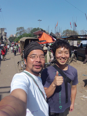 さてさて、実は、ネパールのカトマンドゥでお別れしたチャリダーの秋月さんが、昨日、バラナシに到着したとの連絡を受けまして。秋月さんは、カトマンドゥの後、ポカラ、そしてバラナシまでちゃんとチャリで走ってきたとのこと。いやはや、お疲れ様です、ご苦労様です、ということで、今日、レッスン後に会って、一緒に昼飯を食べることに。
