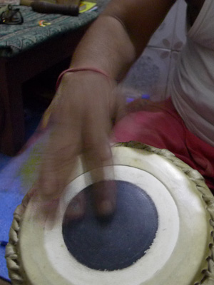 そんなワケで、さらにやる気が増したタブラレッスン。今日は、今やっているコンポジションの更なるバリエーションパターンを教わったのだが・・・メインはパターンではなく、叩き方だった。ベーシックレッスンの時から、自分ではそろそろ高速叩きを始めよう、なんて思って、勝手にスピードを上げて叩いていたのだが、ベーシックレッスンでは、師匠は速く叩くことを強要してこなかったし、むしろ、ゆっくり叩くことを推奨していた。
