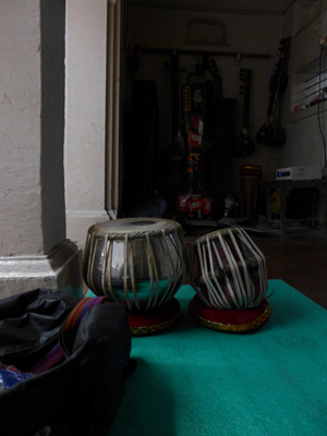 しかし、今日は夕刻まで練習しておきたい事情があった。そんな日なのに、体調が悪くなるとは・・・実は、真剣に練習に取り組むオイラを見て、師匠が「ちゃんとしたタブラを買った方がいい」と以前にアドバイスをしてくれてまして。最初にオイラが買ったタブラセットは、旅用にといろいろ注文をつけて買った、トラベルタブラなんですわ。とりあえず叩くのならいいんだけど、ちゃんとやろうとしたら、安定性とか音とかにいろいろ問題がある。ということで、ちゃんとしたタブラもセットで新たに買うことにして、師匠にいいやつを作ってもらうよう、お願いしておいたんですわ。そんな新しいタブラセットの低音部のバヤンがようやく夕刻に届くぞ、と師匠が喜び顔で教えてくれたのだが・・・夕刻まで待つことは出来ず、今日の個人練習は早めに切り上げて、宿に戻った。