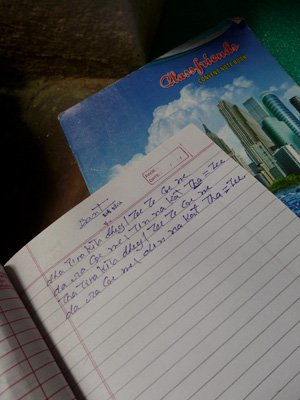 今日のタブラレッスンは、11番目のコンポジション、ダーティラキタデーテテゲナを習った。何気にこのフレーズ難しい。そして、フレーズを書き溜めてあるノートは、ついに2冊目に突入。いやぁ、修行を始めて二か月、ノート一冊埋まっちゃうほどのフレーズを習ったワケで。暗記復習も大変です、ハイ。