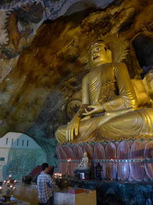 さて、ここんところ、マジで食ってばかりで、顔の張り具合やお腹の出っ張り具合がヤバくなってきた。これはちと動かねば、ということで、観光がてら近くにあるという洞窟寺院に行ってみることに。バスに乗って一本で行けるということだったのだが・・・降りるところが分からず、だいぶ通り過ぎちゃていた。しょうがないので、折り返し戻りのバスに乗り、ようやく到着。