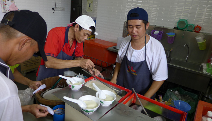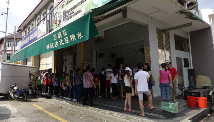 まずは豆腐花。豆腐を作る手順で作る固めない豆腐みたいなものだ。これと豆乳をセットでいただく。イポーは水が美味いので、食べ物が美味しくなるらしい。より水のよさが分かる豆腐花みたいな食べ物は、他での違いがもろにでるのだ。といっても、オイラは他で豆腐花を食ったことがないので、比べようがないのだが。