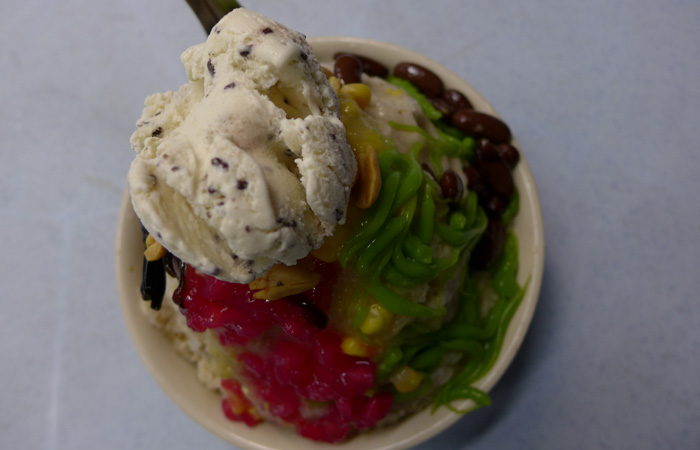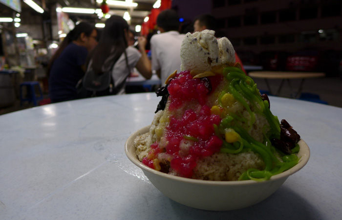 さてさて、マレーシア、実はこの時期超暑い。屋台にかき氷屋さんがあったので、頼んでみたら・・・想像以上の山盛りかき氷が出てきた。これだけ盛っててもめっちゃ安いのだが。