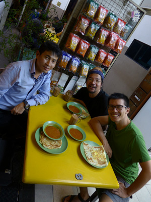 と思って、宿に戻ったら、明日出発するオイラのために、SKさんとホワンくんが、待っててくれてて。「これからチャイ飲みだ」と、いつもの近所のチャイ屋へ。どうやらこのチャイ屋夜中中開いているらしい。シンガポールの夜は長い・・・
