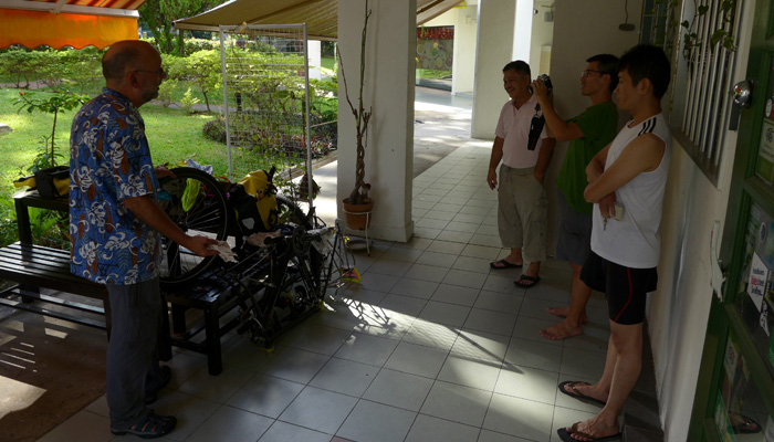 そして、宿に戻ったら、ヨーロピアンのサイクリストおじさんが新たに到着していた。これから東南アジアをゆっくり走るらしい。いやぁ、こういう人の姿を見ると、オイラも走りたくなっちゃうんだけどなぁ・・・ああ、やっぱり相棒を置いてきたことをちょいと後悔。