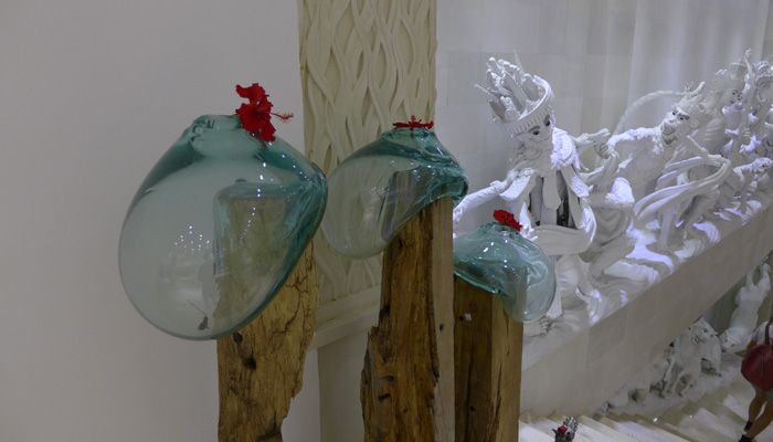 が、まぁ、シルバー加工自体はオイラあんまり興味がないんですよねぇ。ワヤンさんがせっかく連れてきてくれたのだから、それなりに展示物を見るのだが、ほぼほぼ興味は湧かない。いや、よくよく見たら素晴らしい細工だなぁ、と感じたりはするのですが・・・とりあえず、さっさと出るのもなんだし、としばし、店の中をブラブラ。