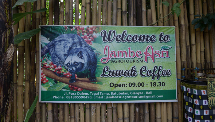 さて、次に向かったのがコーヒー店。え?アートとは関係なくね?とお思いでしょうが、インドネシアのコーヒーはアートなのですよ。インドネシアのコーヒーは、なんと、ジャコウネコが食べた糞から取り出した豆を焙煎して飲む、というアバンギャルドなコーヒーなんです。ルアクコーヒーというそのコーヒー。寄ったのは、ルアクコーヒーが飲める店なのだ。このルアクコーヒー、めっちゃ楽しみにして来たのだが・・・正直、普通のコーヒーとの味の違いがよくワカラナイ。日本で飲むと一杯千円以上もするようなコーヒーなのだが、普通のコーヒー以上のありがたみを感じれない・・・いやぁ、ホント、コーヒー音痴なんです、オイラ。