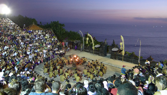 ここで行われるケチャダンスがいいとのことなのだが・・・ここは、ケチャダンス以前に、ロケーションがめっちゃ素晴らしい場所だった。断崖絶壁で眼下は海というド迫力の絶景ポイント。