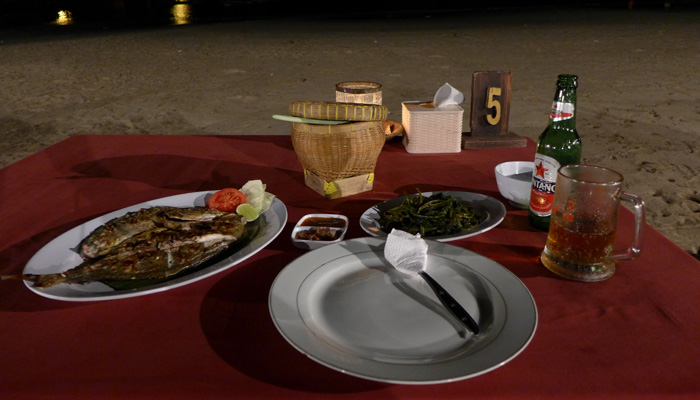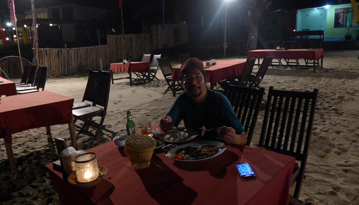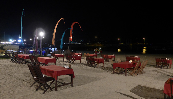 それにしても、ロケーションがロマンチックすぎ。夜の海を目の前にしての浜辺のテーブル。これは男一人でいても面白くはないな。女の子と来れば楽しいと思う。ただ、なるほど、こういう場所で食事をすると、気分的にいい感じになるというのは、確かだ。これはやってみてわかったよ。何事も、経験だ。