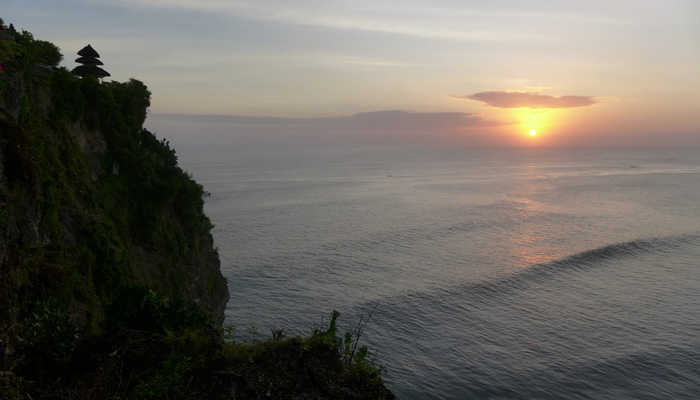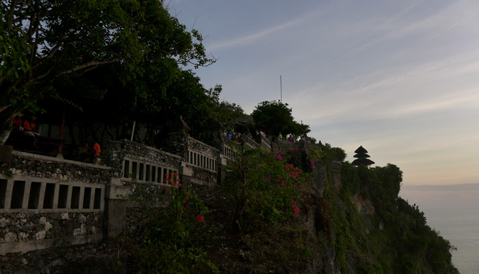 オイラ的にはどのケチャダンスでも見れればいいのだが、プロのガイドのワヤンさんとしては、やはり、最高のケチャダンスを見てもらいたいというのがあるのだろう。おススメのケチャダンスがあるということで、車で1時間半くらいかけて、バドゥン半島南西端の海岸沿いにあるウルワトゥ寺院へ。