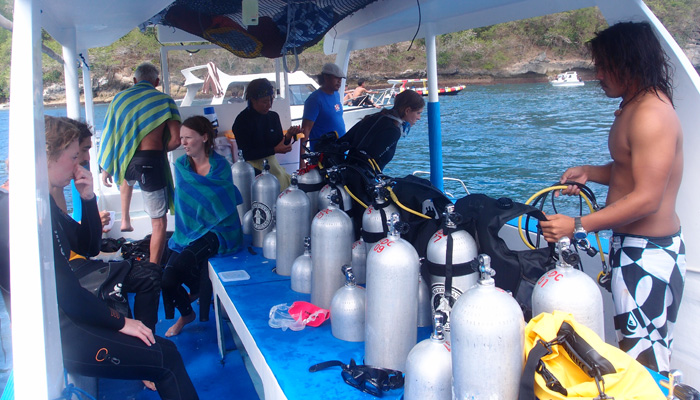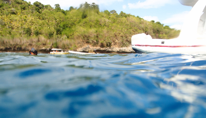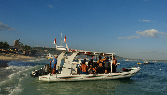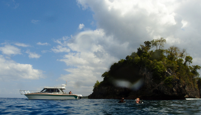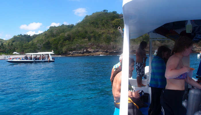 1時間ほどボートに揺られ、やってきたのは、レンボガン島の隣の隣の島。ここにマンタポイントと呼ばれる、マンタとの遭遇確率の高いダイビングスポットがある。ただ、モザンビークでも同じくマンタポイントと呼ばれる地点で潜ったのに見れなかったからねぇ・・・オイラ的には期待はしつつも、まだ半信半疑。