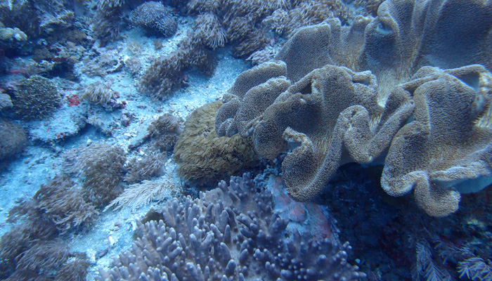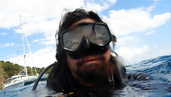 本日は2ダイブだったので、マンタポイントから上がって、移動して昼食を食べた後、もう一本潜ったのだが、これはオイラには蛇足だった。マンタポイントより水が綺麗なクリスタルベイというダイビングポイントだったのだが、テンションが全然あがらない。