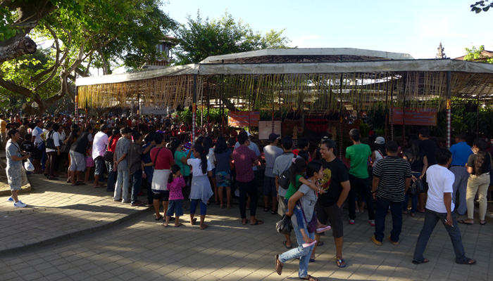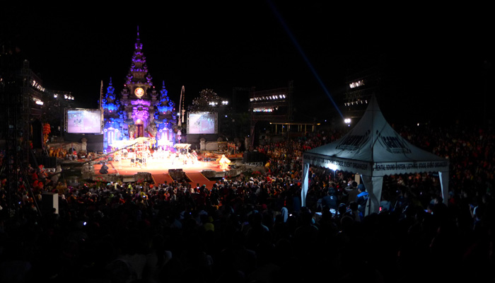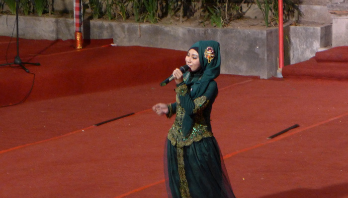 で、メインはやっぱり夜20時から大ステージで行われるパフォーマンス。今日も早めに行ったのに、すでにいっぱいで立ち見。