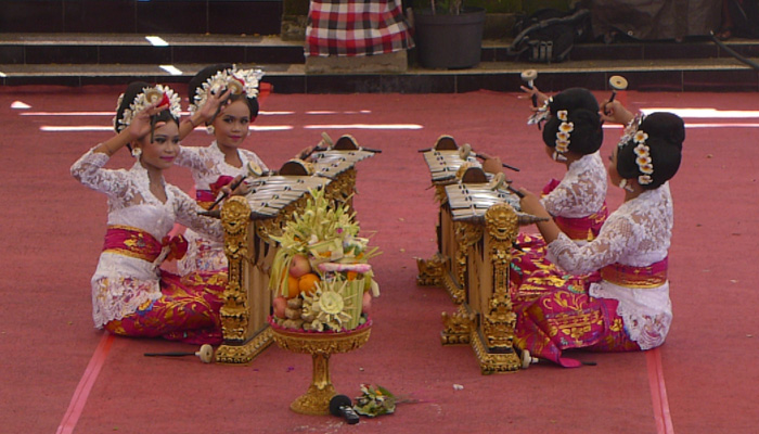 そして始まった演奏は、4台だけのガムランによる合奏。楽器数が少ない分、音がクリアになって分かりやすい。ただ、音数が減ったからといってパワーと言うか、圧倒感みたいなのは全然減っていないのがスゴイところ。あっという間に演奏に惹きこまれてしまった。