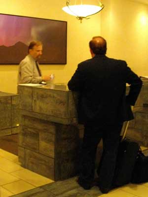 一週間自転車で走り続け、膝も少々痛くなってきたので休息をとることにした。せっかく一日空くので、この際、公開サイトのコンテンツを一気に整えようと思い、ネットのつながるホテルに宿を2泊分とった。「ホテルは無線LANが入ってますからどこでも大丈夫ですよ」という受付の人から説明を聞き、部屋に入って荷物を広げ、くつろいだあと、さぁ作業に取り掛かろうとすると・・・なんたること、取れた部屋が角部屋で、なぜかこの部屋に入ると無線LANがつながらなくなるのだ。廊下では大丈夫なのに!荷物をがっさり広げてしまった後なので、もはや部屋を変えてもらう交渉するのもめんどくさくなり、ネット作業は、パソコンをもって、ロビーでやることにした。どうやら部屋でつながらない人は他にもいっぱいいるらしく、結構な人がロビーでパソコンで作業をしていた(最初にホテルに入った時にこの風景に気づくべきだった)。