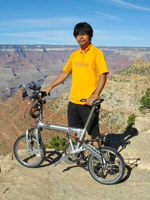 さて、イーストリムの途中の見晴らしのいい場所で、BD-1と共に撮った写真がこれ(ちなみに服が昨日と同じなのはビデオの整合性をとるため、わざとです)。ついでに、<グランドキャニオンで折りたたみ自転車を折りたたみ状態から解除して走り出す>ということを実践し、ビデオに撮っておいた。世界の各地でやってみようかな、このシリーズ。