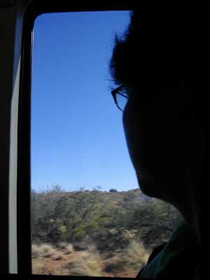 ユースホステルでお世話になったおばちゃんに別れを告げ、バスターミナルまで自転車で。ターミナルで、移動用荷物仕様に詰め替えをして、チケットを購入して、9:10発のバスに乗り込み、出発。・・・とコースが、Phoenix〜FlagStaff〜Albuquerqueと、自転車でエイコラ走ってきた道を逆走するではないですか!苦労して走ってきた道をバスで戻るって、悲しい気分になるかなと思ったんですが、意外とそんな感情は沸き起こらず、一度は見た風景を目の前にして、ああ、この道を走ってきたんだよなぁ、と感慨にふける気分で一杯になりました。