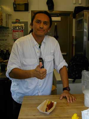 そんな中、街の中心部を流れるサンアントニオ川沿いにある<River Walk>を横目に歩いていると、パブリックなレストルームを発見。ちょうど、トイレに行きたかった僕は、トイレ脇に自転車を停車。すると、ちょいイケメンのお兄さんが、「自転車置き場はあっち。ここには止めちゃ駄目だよ」と言ってきた。その後彼は、自転車置き場まで移動しようとする僕についてきて、「お前の名前はなんていうんだ」「Yoshiです」「おお、Yoshi、俺も自転車に乗るんだ。君は、トラベラーかい?どこから来たんだ?どれくらい走ったんだい?」なんて気さくに話しかけてくる。自転車置き場に自転車を止めると、横にあるホットドッグの出店を指差し、「俺はここに店を出しているんだ、ちょっと待ってな」と。とりあえず、トイレに行きたかった僕は、「トイレに行ってきます」と言い、その場を後にした。で、トイレから戻ってきて、ホットドッグ店に顔を出すと、「これサービス、持ってけ」と、なんとグレープジュースをおごってくれた。「旅、気をつけてな!」とありがたい言葉までかけてくれて・・・変な絡まれ方もいっぱいされ、人から話しかけられると、ついつい身構えちゃうんですが、こういう優しさに出会うと、砂漠でオアシスを見つけたかのような・・・凹んでた気持ちから一変して、前向きな気持ちになれちゃいます。